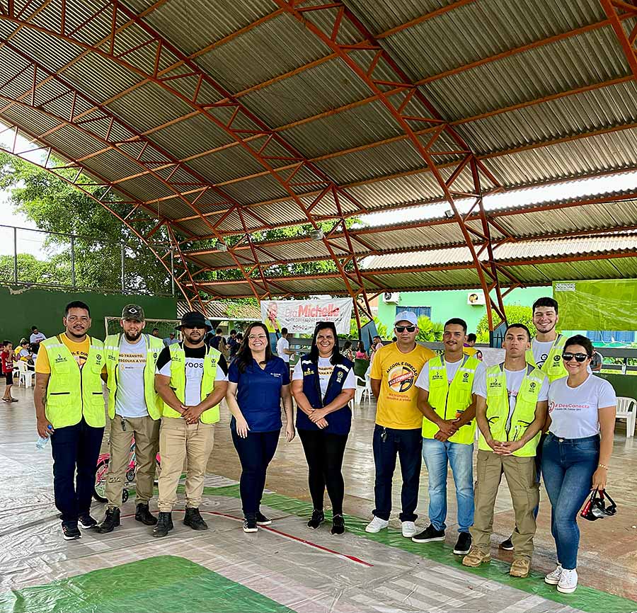 A ação também contou com a parceria da patrulha do DETRAN, promovendo atividades educativas com crianças e adolescentes.