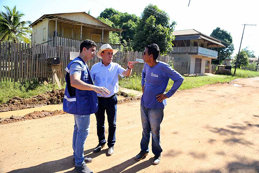 O prefeito de Rio Branco, Tião Bocalom (PP), esteve na manhã desta quarta-feira, 5,acompanhando os trabalhos de recuperação que vem sendo realizado nas ruas do bairro Taquari, região do Segundo Distrito, por meio do programa Recupera Rio Branco, que objetiva recuperar ruas, redes de esgoto, drenagem em outros, dos bairros atingidos pelas cheias do Rio Acre e Igarapé São Francisco.