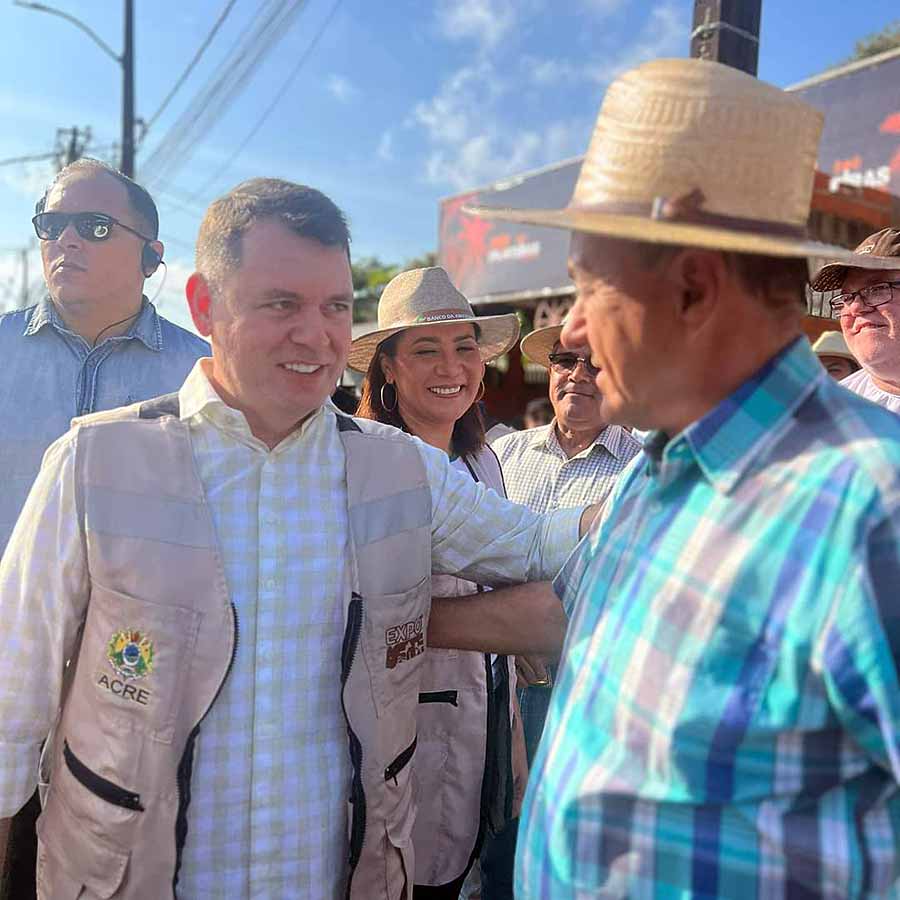 O governador Gladson Cameli apenas abriu o evento no Calçadão da Gameleira. Ele não fez o trajeto até o Parque de Exposições, como em anos anteriores, por precaução por conta de procedimentos estéticos feitos há poucos dias.