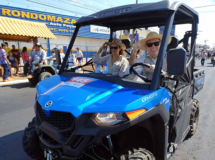 A vice-governadora Mailza Assis e o secretário de Governo, Alysson Bestene, iniciaram a cavalgada a cavalo. Depois, Alysson resolveu continuar até o Parque de Exposições Wildy Viana em um quadriciclo ao lado de Roberta, sua esposa.